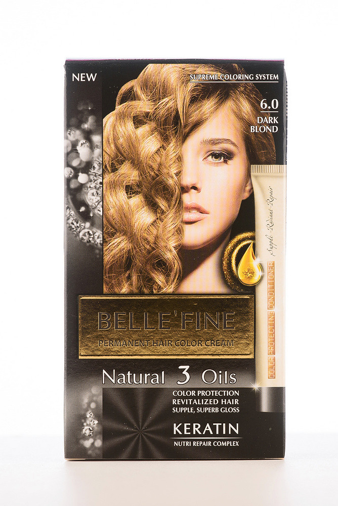 Стійка крем-фарба для волосся Belle'Fine розроблена для якісного фарбування і для ефективного догляду за волоссям. Фарба має легку кремоподібну консистенцію і легко розподіляється по волоссю. Активні компоненти насичують волосся поживними речовинами, завдяки чому колір виходить більш насиченим і зберігається дуже довго. Пігменти добре зафарбовують сивину. Волосся стає гладким, шовковистим, еластичним і сяючим.